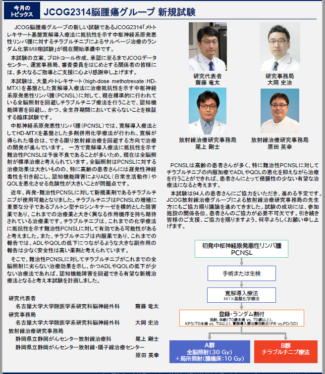 1/19に脳腫瘍グループJCOG2314の登録が開始されました