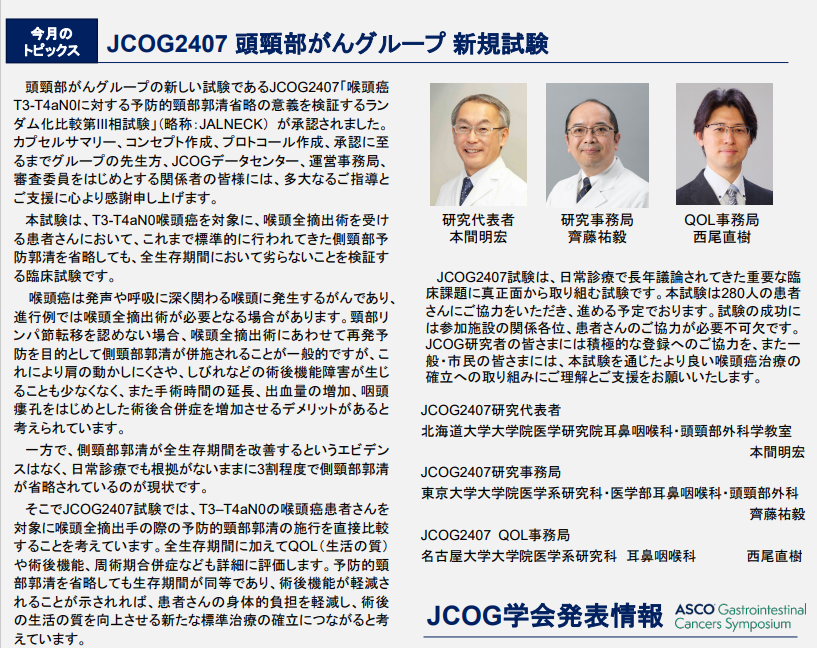 2/12に頭頸部がんグループJCOG2407の登録が開始されました